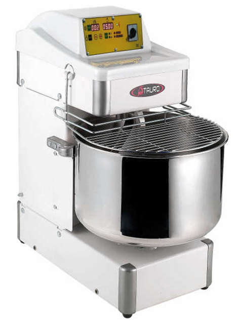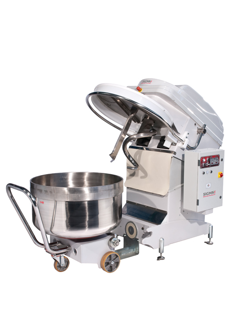 Essential mixer for pastry shops, bakeries, confectionery industries and pizzeria. The twin arms system oxygenates the dough and reduces its heating, obtaining thus excellent results in the final product. The mobility of the arms improves the quality of the dough. The structure of the machine is of thick painted steel; all models are sturdy, silent and reliable. The bowl and the arms are made of special stainless steel. The arms drive gears are of special cast iron in an oil bath. The machine is mounted on ball bearings and is supplied with two speeds and optional timer. All the parts can be easily disassembled for replacement. The machine is fitted on wheels and manufactured in accordance with CE norms.